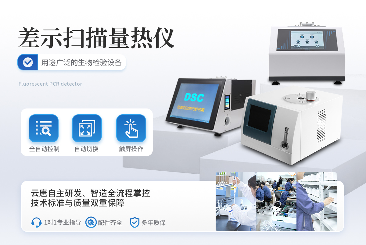 差示掃描量熱儀為觸摸屏式,可進行玻璃化轉變溫度測試、相轉變測試、熔融和熱焓值測試、產品穩定性、氧化誘導期測試。