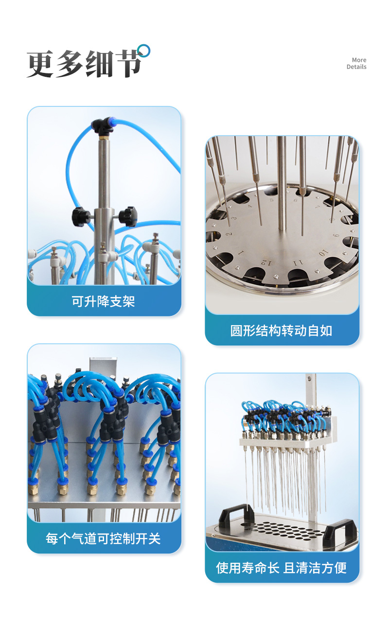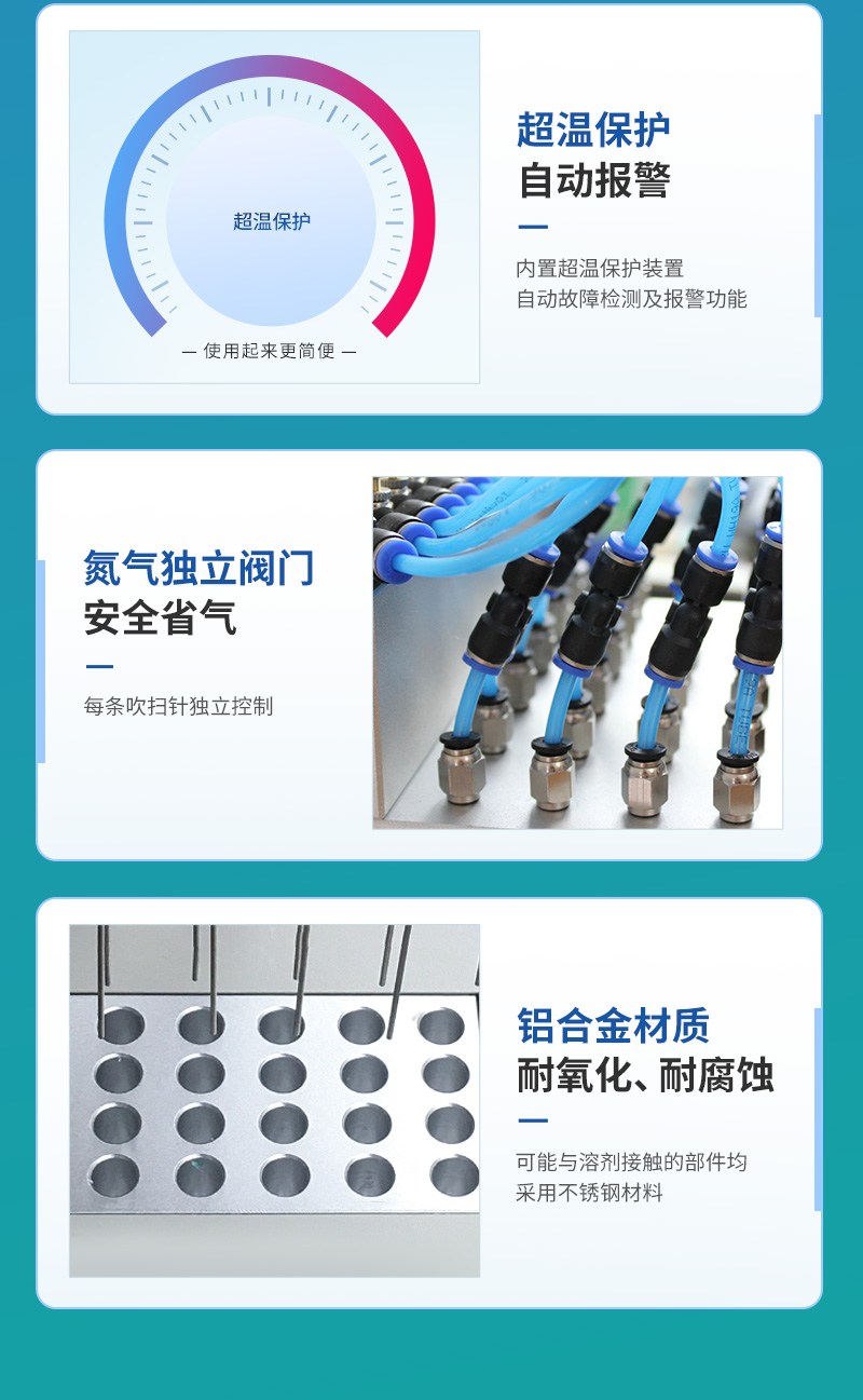 水浴氮吹儀采用吹掃捕集技術,同時可對樣品進行控溫加熱,利用氮氣等惰性氣體快速、可控、連續地吹到樣品表面來達到樣品溶液快速無氧濃縮。該方法具有省時、便捷、準確的特點。廣泛用于食品安全、醫藥、農藥殘留檢測、臨床藥代等領域。