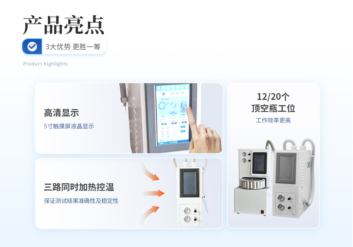 | 1.主要功能有: (1)液晶顯示:方法參數設置、實時工作狀態、運行時間、年-月-日-時等; (2)頂空瓶、進樣系統和取樣(進樣)導管,三路同時加熱控溫; | 2.樣品區溫度控制范圍:室溫-260℃,以增加1℃任設; | 3.樣品傳送管線溫度控制范圍:室溫-220℃,以增加1℃任設 | 4.閥進樣系統溫度控制范圍:室溫-220℃,以增加1℃任設: | 5.進樣加壓范圍:0-0.4Mpa (連續可調); | 6.頂空瓶工位:12個。 |