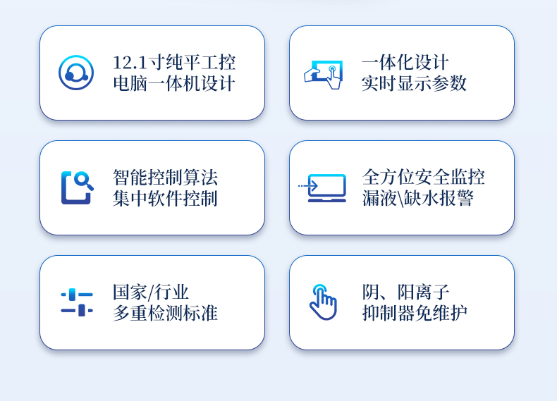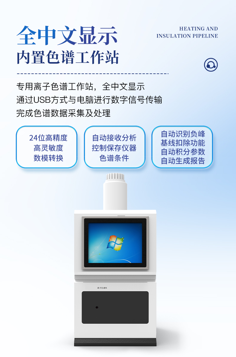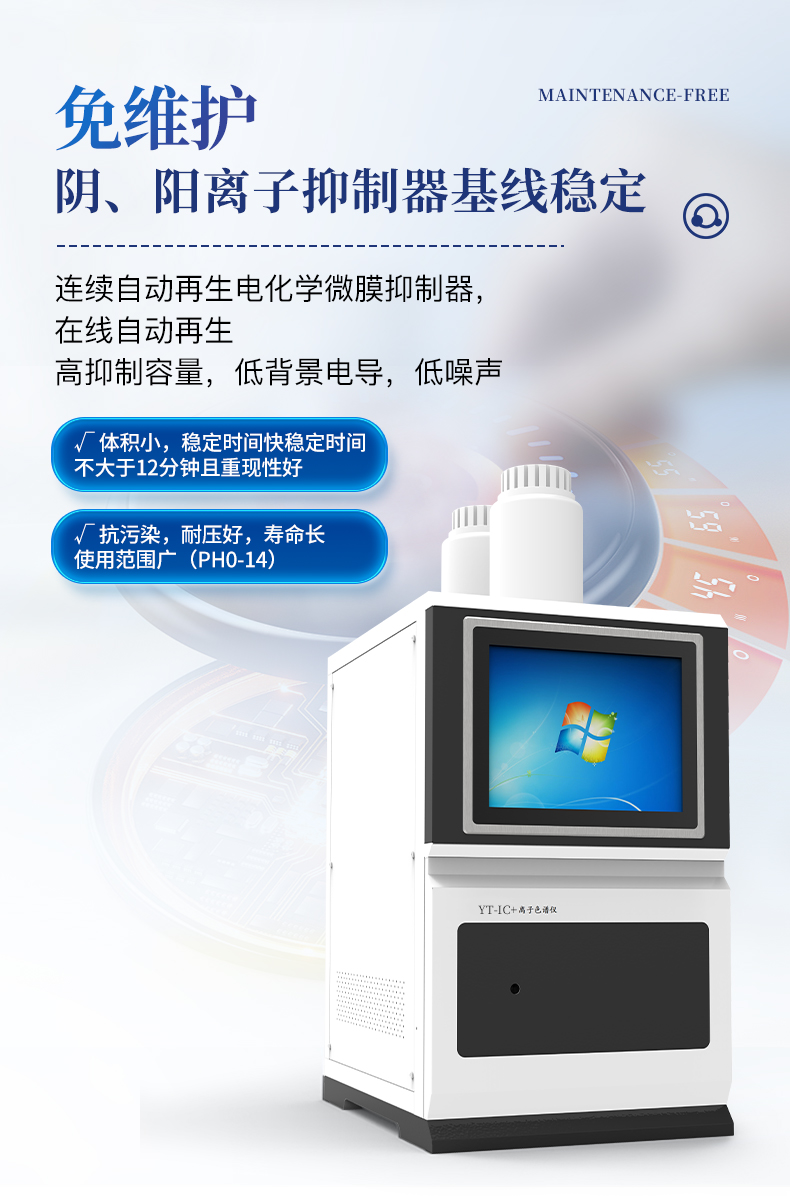 | 我們公司作為離子色譜儀器市場的新業(yè)態(tài),一直致力于為用戶提供更快捷、優(yōu)質(zhì)的儀器,以保障實驗室的建設(shè)和運行。始終堅持以客戶為中心,為有檢測需求的客戶服務(wù)。物美價廉、響應(yīng)迅捷、服務(wù)全面。 | 全新一代離子色譜儀,采用12.1吋純平工控電腦一體機設(shè)計(用戶不需要配電腦),實時顯示儀器運行參數(shù)和狀態(tài);一鍵啟動電動閥進(jìn)樣,一鍵完成儀器開關(guān)機、維護(hù)等操作,一鍵調(diào)閱儀器操作教程,方便快捷。 | 離子色譜儀核心零部件自主研發(fā)、自主知識產(chǎn)權(quán)可控。采用一體化設(shè)計,集離子色譜主機、淋洗液發(fā)生器、工控電腦、色譜工作站于一體,結(jié)構(gòu)緊湊,流路*短,對流路造成的峰型擴(kuò)展有很好的改善。一體化恒溫箱:色譜柱、抑制器、電導(dǎo)池、放大電路都處于同一恒溫系統(tǒng),改善了電導(dǎo)檢測器的溫飄和基線噪聲。內(nèi)置多處漏液報警器和缺水報警器,全方位安全監(jiān)控。由PLC控制的各個部件統(tǒng)一到電腦顯示屏的集中軟件控制系統(tǒng),操作方便,鼠標(biāo)所見即所控。 |