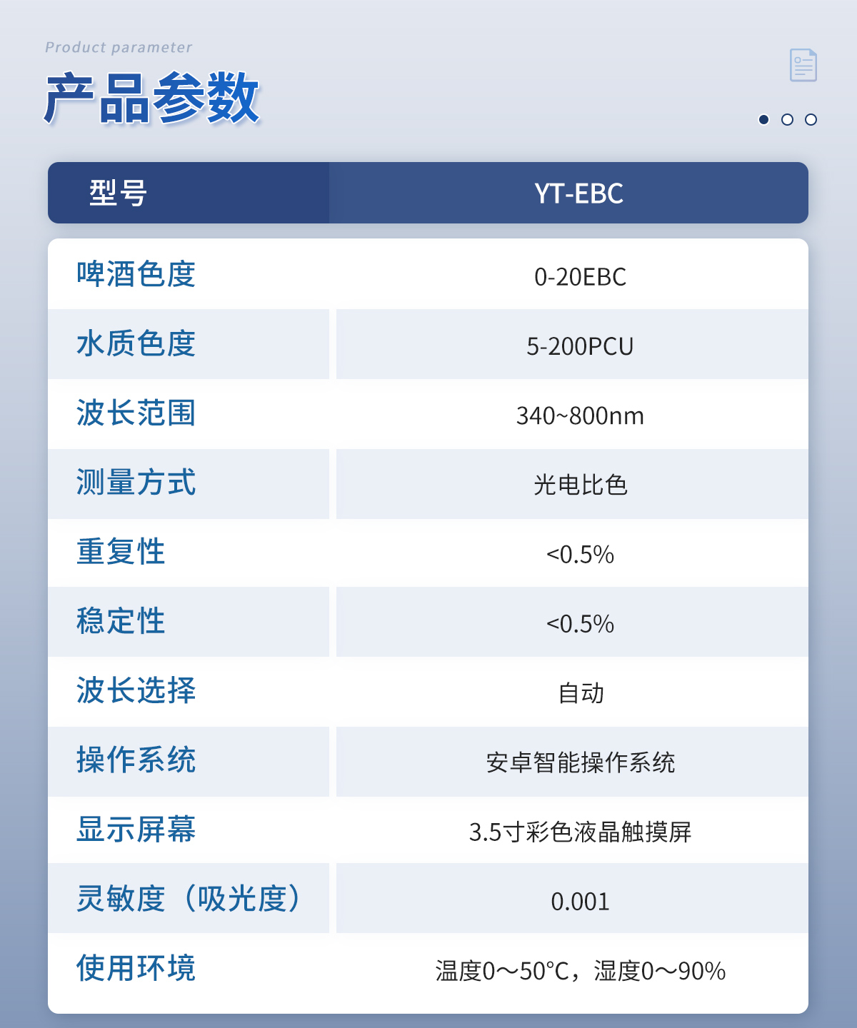 啤酒色度測定儀采用鉑-鈷標準色度法,用于測定溶解狀態(tài)的物質(zhì)所產(chǎn)生的顏色,儀器采用國家標準GB5750中所規(guī)定的鉑-鈷色度標準溶液進行標定,采用鉑-鈷色度作為計量單位。