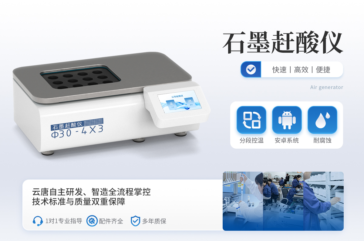 石墨趕酸儀,具有快速、**、便捷等優(yōu)點,適用于食品、藥品、質(zhì)檢、環(huán)保、疾控、化工、高校等行業(yè)樣品的處理。可用于微波消解的預(yù)處理和趕酸處理,是原子吸收、原子熒光、ICP-AES等分析儀器的理想配套產(chǎn)品,更適合與微波消解儀配套使用。