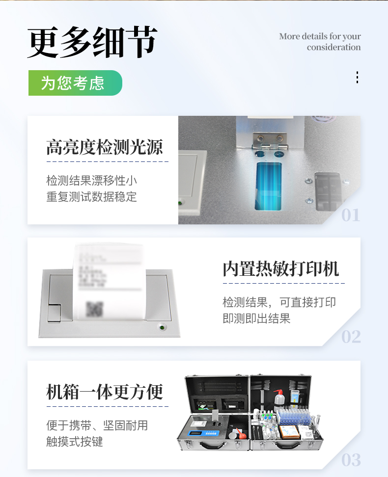 ★《機(jī)箱/藥劑一體式鋁合金機(jī)箱》設(shè)計(jì),便于攜帶、堅(jiān)固耐用,配套成品藥劑。
