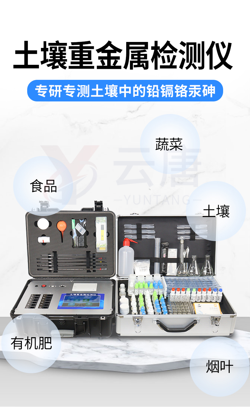 土壤重金屬污染問(wèn)題日益嚴(yán)重,造成土壤耕作層內(nèi)的鎘、銅、砷、鉻、汞、鐵、鋅、錳、銅、鋁等重金屬大量富積、積累,成為當(dāng)下面臨的主要環(huán)境問(wèn)題之一。土壤中的重金屬通過(guò)在作物體內(nèi)富集進(jìn)入食物鏈,對(duì)人畜健康造成嚴(yán)重威脅。有色金屬礦山的開(kāi)采、 工業(yè)“三廢”的排放、含重金屬?gòu)U棄物堆積、農(nóng)業(yè)生產(chǎn)中的污水灌溉,農(nóng)用化學(xué)藥品的不合理使用等,都可能導(dǎo)致有害重金屬元素直接或間接進(jìn)入土壤,導(dǎo)致土壤、作物、果蔬、水質(zhì)、水產(chǎn)品等重金屬含量嚴(yán)重超標(biāo)。但是當(dāng)前重金屬測(cè)定方法測(cè)定速度慢、步驟繁瑣且儀器昂貴?;谶@種形勢(shì),我們開(kāi)發(fā)出了重金屬快速測(cè)定方法。