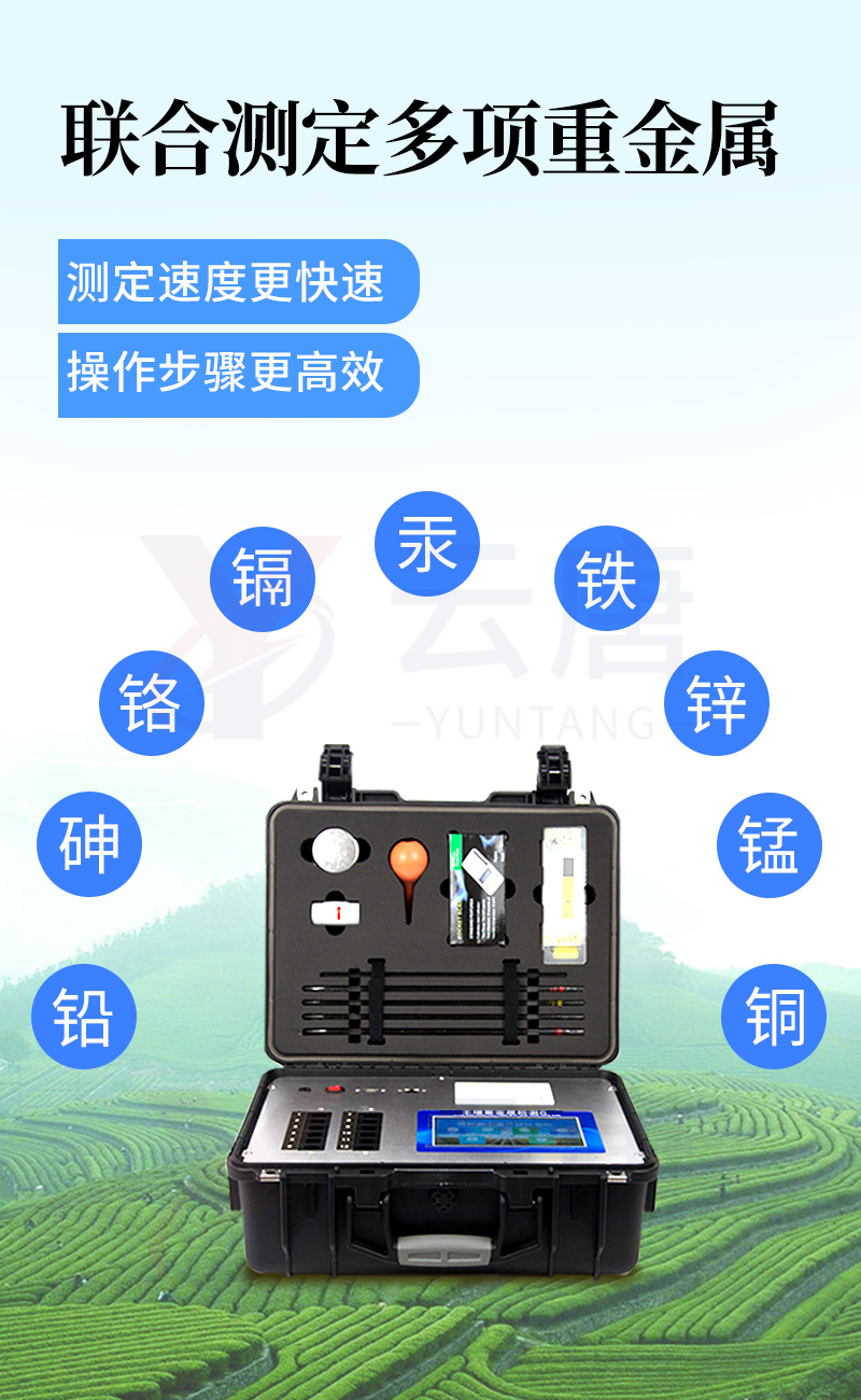 可對(duì)土壤、肥料、作物、蔬菜、水果、水質(zhì)、食品等樣品中的砷、鉛、鎘、鉻、汞、鐵、鋁、鋅、錳、銅等進(jìn)行快速聯(lián)合測(cè)定。