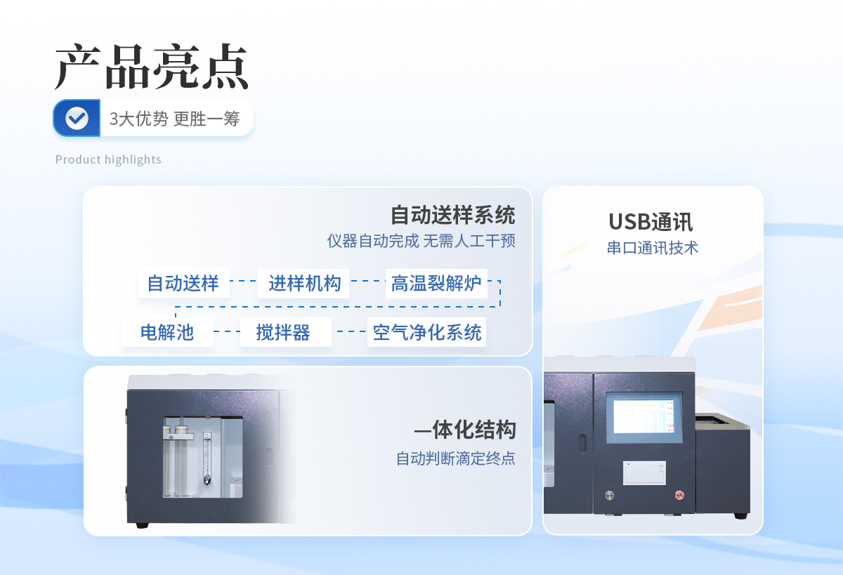 | 1、 手自一體化自動(dòng)送樣系統(tǒng),將自動(dòng)送樣、進(jìn)樣機(jī)構(gòu)、高溫裂解爐、電解池、攪拌器、空氣凈化系統(tǒng)等部件巧妙地結(jié)合在一起,使儀器結(jié)構(gòu)更加緊湊,更加合理、更加穩(wěn)定??稍诰€式插隊(duì)添加樣品,無需人工送樣,自動(dòng)化程度高,若樣品少也可采用手動(dòng)送樣方式。 | 2、采用—體化結(jié)構(gòu),自動(dòng)判斷滴定終點(diǎn),縮短了實(shí)驗(yàn)時(shí)間。所有關(guān)鍵部件均采用了設(shè)計(jì)理念及進(jìn)行了嚴(yán)格的控制,確保儀器能長(zhǎng)時(shí)間穩(wěn)定運(yùn)行。 | 3、采用特別的數(shù)據(jù)采集網(wǎng)絡(luò)及多級(jí)校正技術(shù),確保高、中、低硫含量測(cè)試結(jié)果的準(zhǔn)確性。 | 4、送樣機(jī)構(gòu)采用電子電解液分子濃度采集電路,可靠性高,不會(huì)產(chǎn)生過電解現(xiàn)象。 | 5、串口通訊技術(shù),可采用usb通訊,兼容性好,具有廣泛的適用性。 | 6、自由設(shè)置送樣時(shí)間及預(yù)置溫度,采用進(jìn)口霍爾元件控制送樣位置。 | 7、采用剛玉瓷舟,減少卡樣的可能。一次可放1-24個(gè)樣由程序控制實(shí)現(xiàn)自動(dòng)升溫、控溫、送樣、測(cè)定,結(jié)果自動(dòng)存盤、自動(dòng)打印,并可中途在線式插隊(duì)添加試樣,大大地提高了工作效率,真正實(shí)現(xiàn)無人值守; | 8、采用庫(kù)侖滴定法進(jìn)行測(cè)定,測(cè)定時(shí)間可根據(jù)不同試樣自動(dòng)判斷,速度優(yōu)于艾士卡重量分析法和高溫燃燒中和法; |