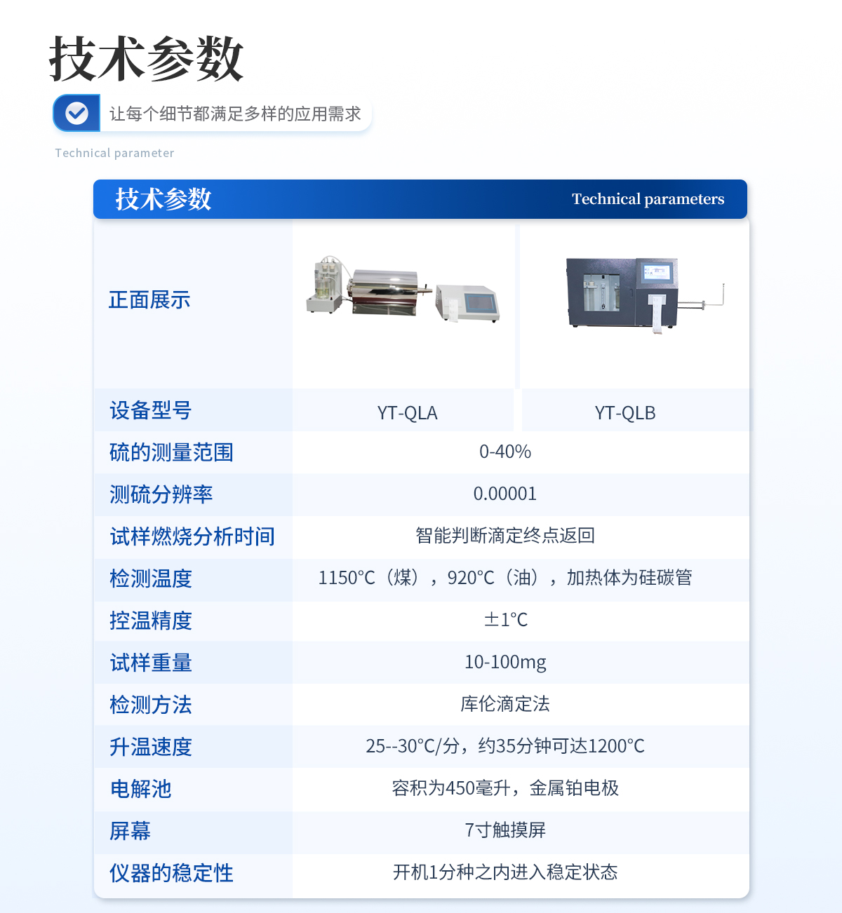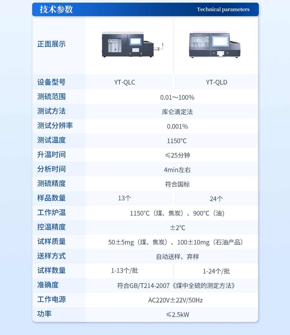 | 測(cè)硫范圍:0.01~100% | 測(cè)試方法:庫(kù)侖滴定法 | 測(cè)試分辨率:0.001% | 測(cè)試溫度:1150℃ | 升溫時(shí)間:≤25分鐘 | 分析時(shí)間:4min左右 | 測(cè)硫精度:符合國(guó)標(biāo) | 樣品數(shù)量:24個(gè) | 工作爐溫:1150℃(煤、焦炭)、900℃(油) | 控溫精度:±2℃ | 試樣質(zhì)量:50±5mg(煤、焦炭)、100±10mg(石油產(chǎn)品) | 送樣方式:自動(dòng)送樣、棄樣 | 試樣數(shù)量:1-24個(gè)/批,試驗(yàn)過程可添加/替換試樣 | 準(zhǔn)確度:符合GB/T214-2007《煤中全硫的測(cè)定方法》 | 工作電源:AC220V±22V/50Hz 功率:≤2.5kW |